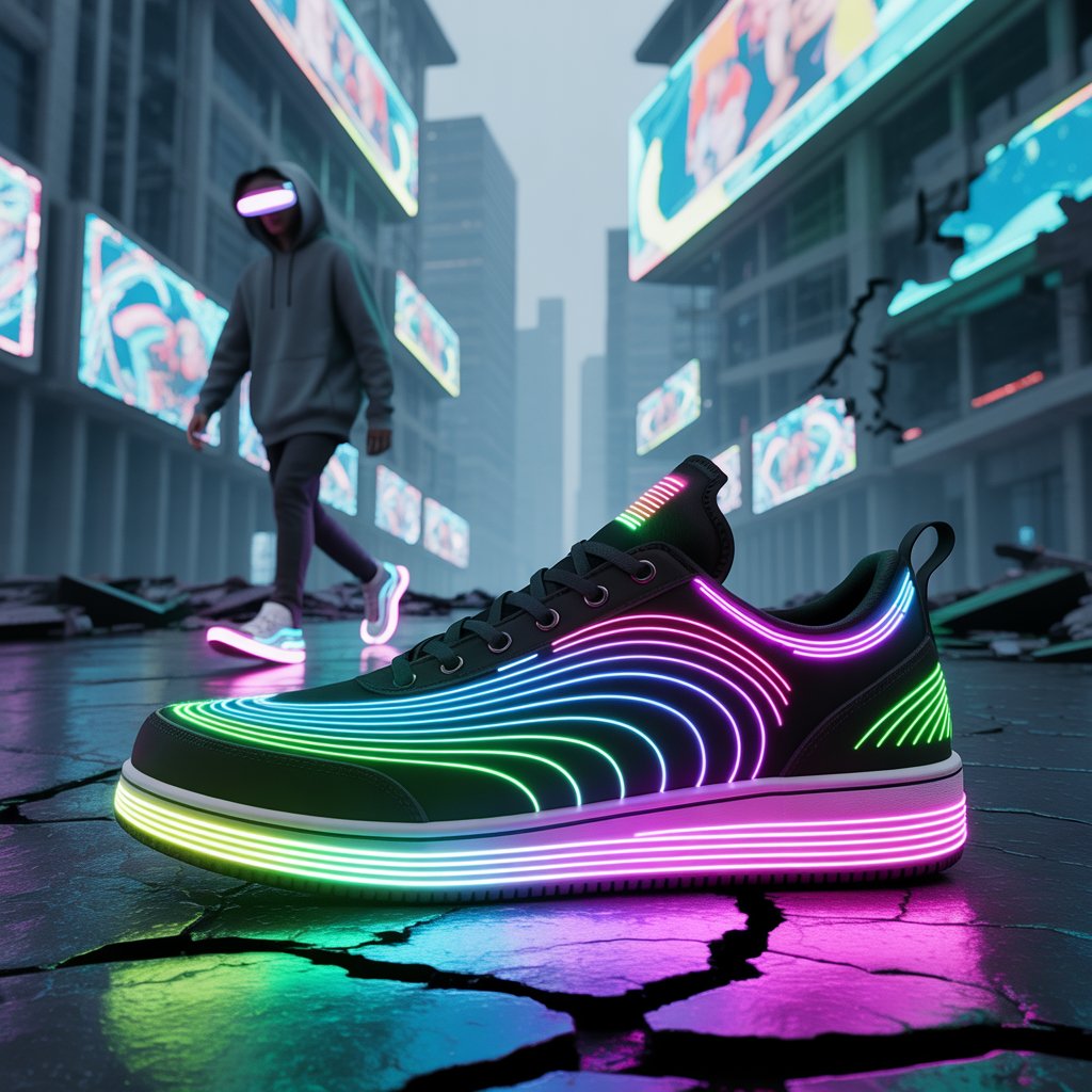 Discover our sneaker collections glowing with neon energy, crafted for ultimate comfort and style in 2050.